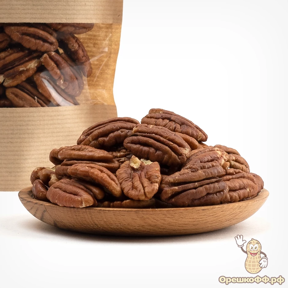 Орех пекан - плод дерева Кария пекан. По внешнему виду схож с грецким орехом и это неспроста, ведь пекан считается его близким родственником. Отличается от последнего менее извилистыми углублениями, а также более мягким, чуть сладковатым вкусом. Скорлупа пекана овальной или круглой формы, в которой расположены два цельных ядра, размер каждого из них может варьироваться от 1,5 до 3 см. Аналогично грецкому ореху плод покрыт несъедобной зелёной кожурой. Из-за этого пекан иногда именуют оливковым орехом.
