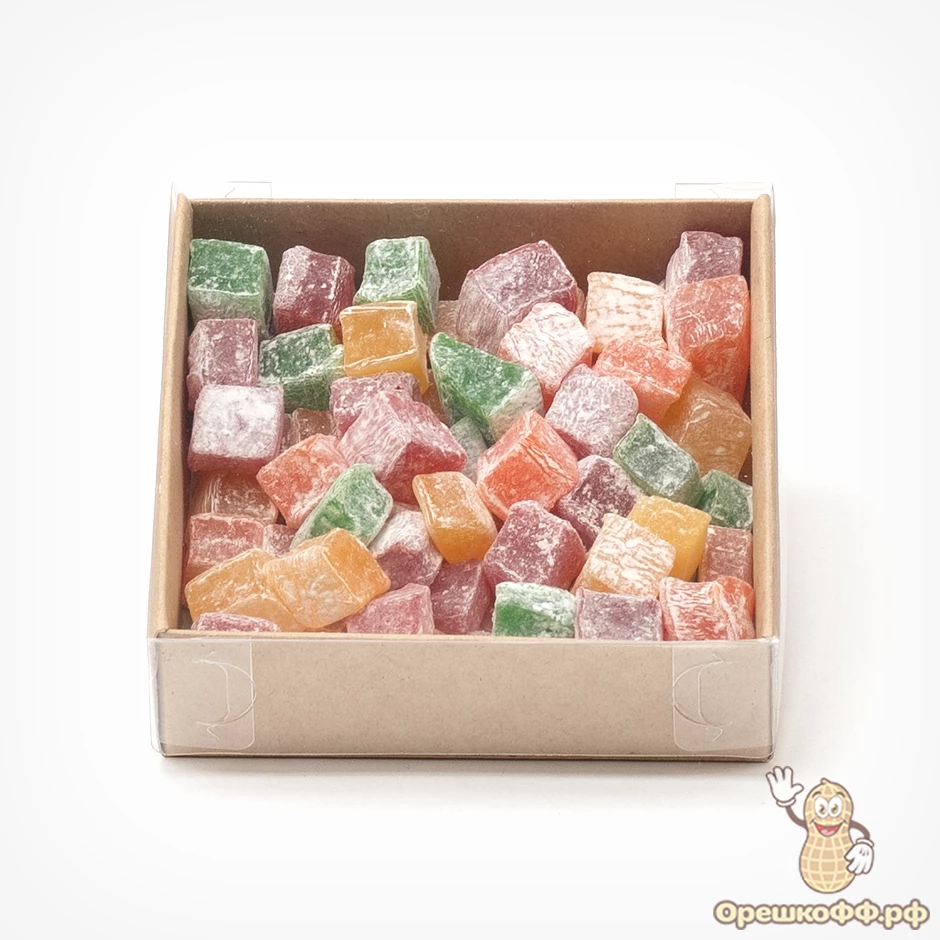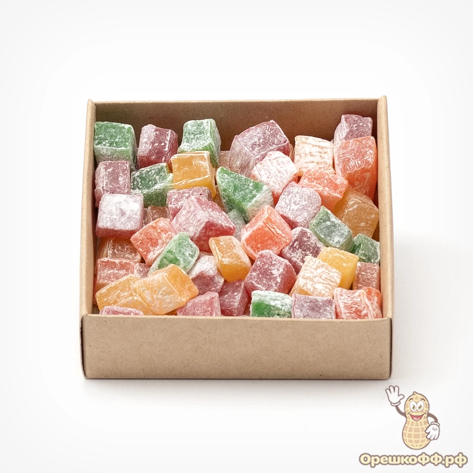 сахар, крахмал кукурузный, регулятор кислотности (Е330), ароматизаторы ("Апельсин", "Клубника", "Яблоко", "Лимон"), красители (Е124, Е102, Е110, Е133)